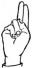 На ћирилици написано РАДНА ВУЛИЋЕВИЋ састоји се из 14 слова [?]. Исписано ћириличном једноручном азбуком за глувонеме: